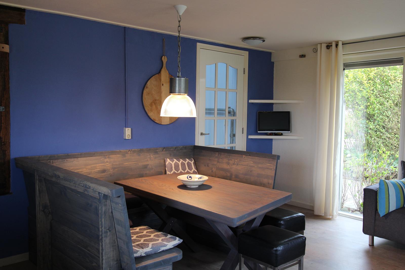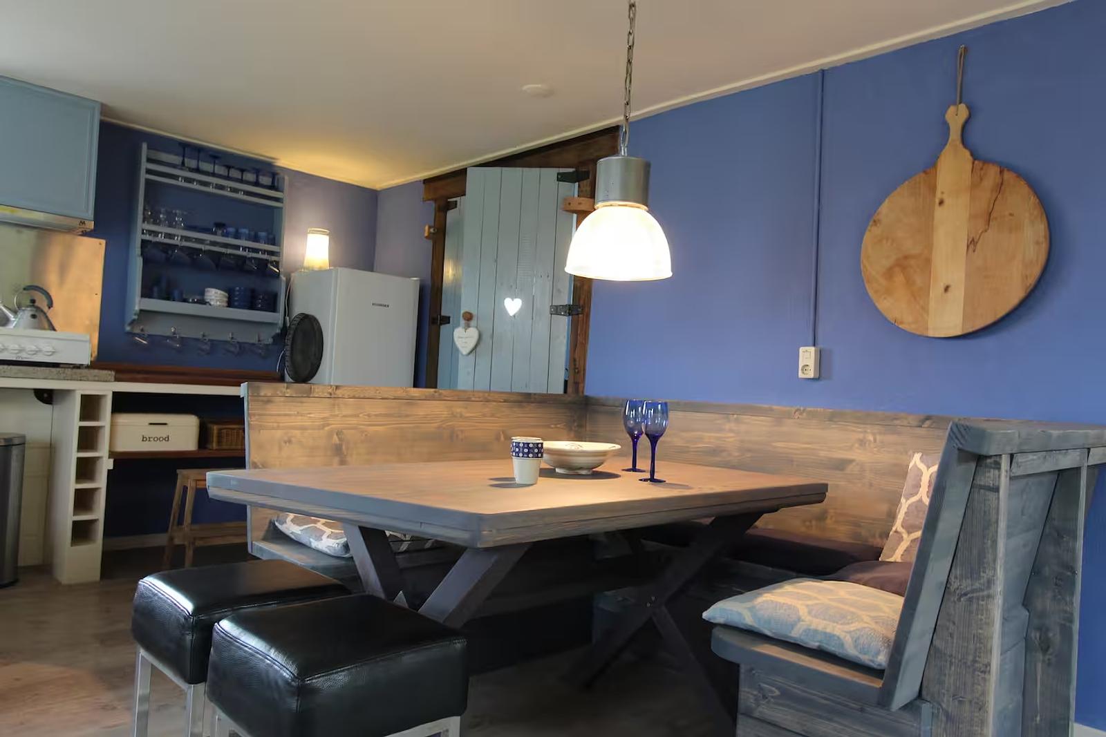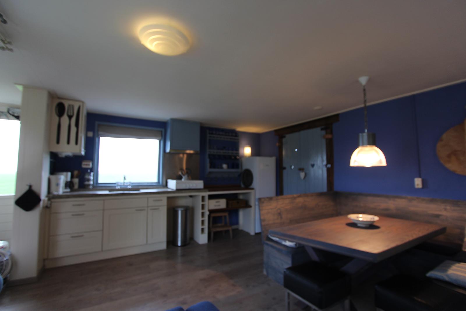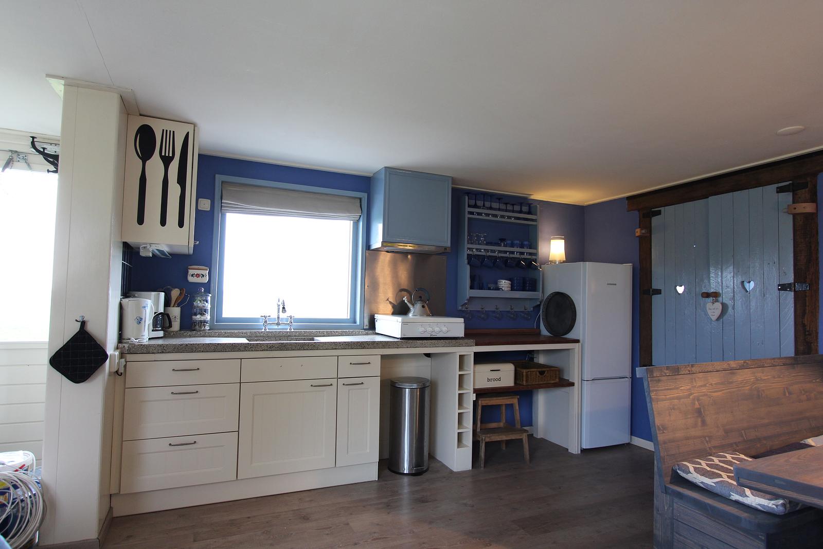 Op de begane grond bevindt zich een sfeervolle en ruime bedstee met een comfortabel tweepersoonsbed. Deze karakteristieke slaapruimte geeft het appartement een warme, knusse en zelfs romantische uitstraling. Daarnaast vindt u beneden een volledig ingerichte keuken waar u moeiteloos uw eigen maaltijden bereidt, evenals een badkamer en een apart toilet. Alles is aanwezig voor een zorgeloos verblijf.