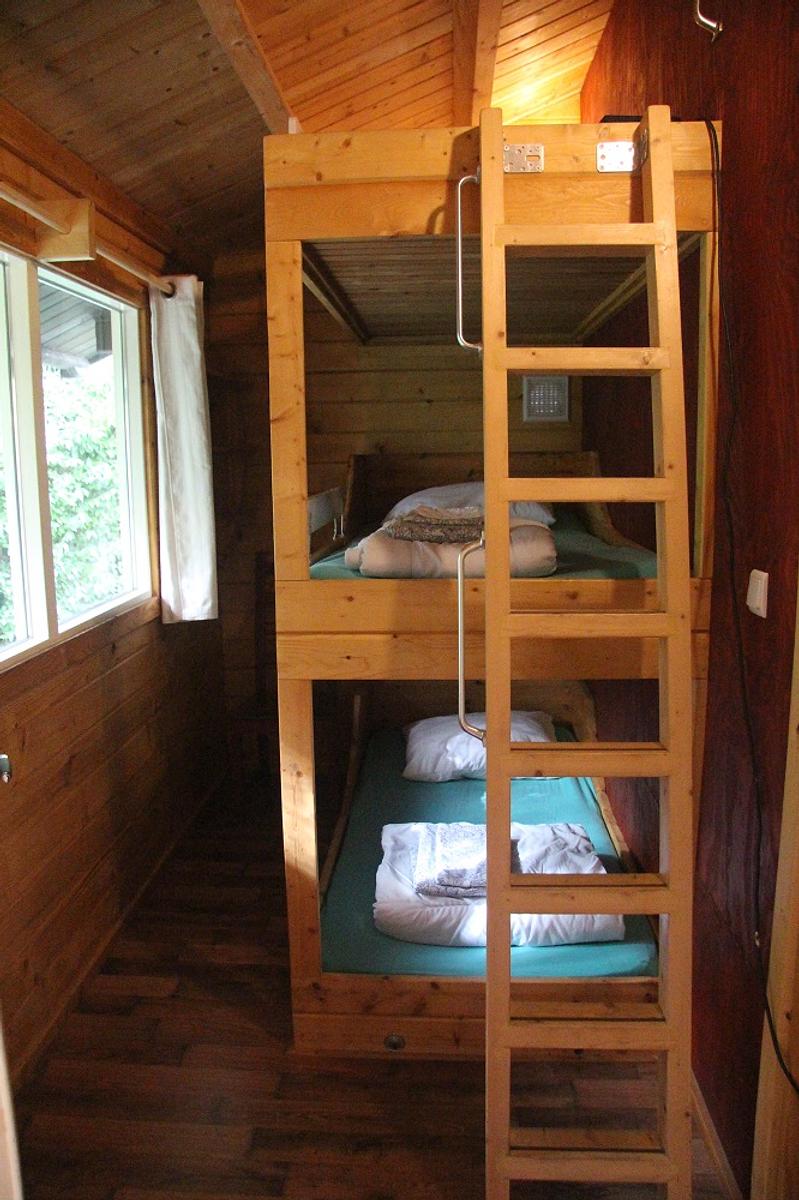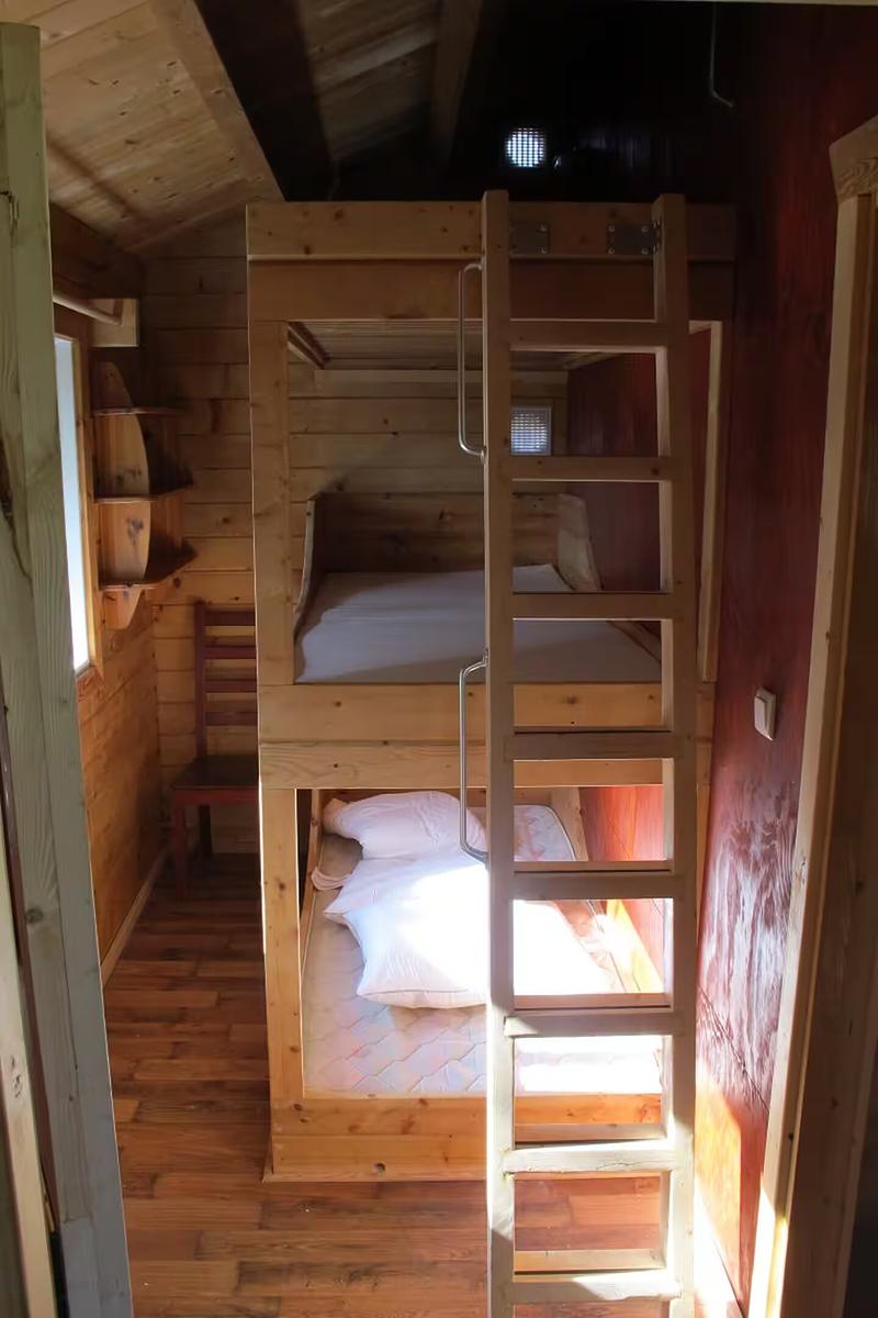 De blokhut beschikt over 2 slaapkamers. Eén slaapkamer is ingericht met een comfortabel boxspringbed. De andere slaapkamer heeft een 3-persoons stapelbed – een echte belevenis voor kinderen (en stiekem ook voor volwassenen). Ideaal voor gezinnen die samen iets bijzonders willen ervaren.
