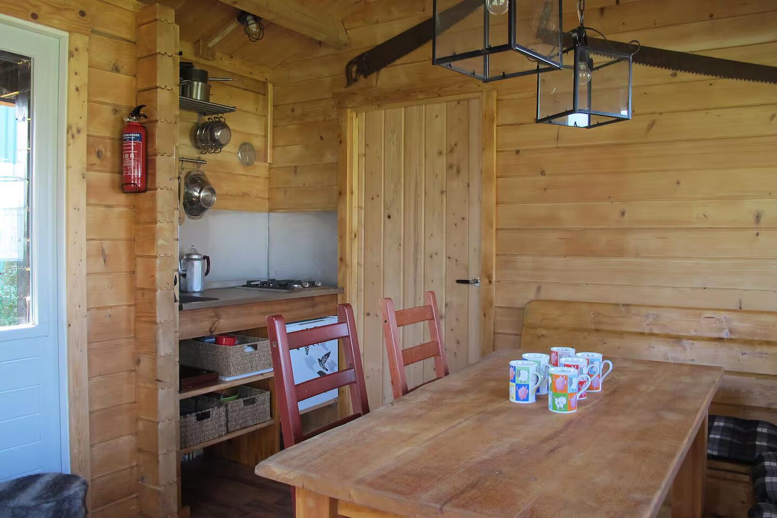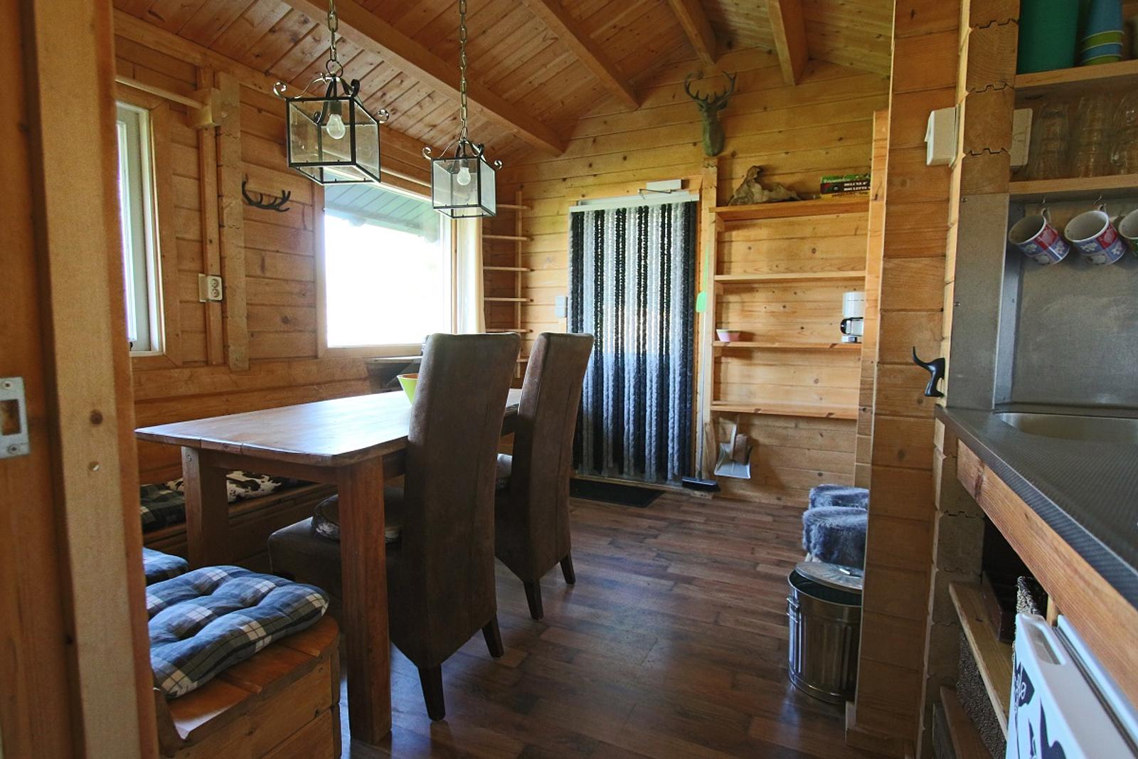 De blokhut is stoer ingericht en ademt een warme, natuurlijke sfeer. U verblijft hier midden in het landschap, met de rust van het platteland om u heen.