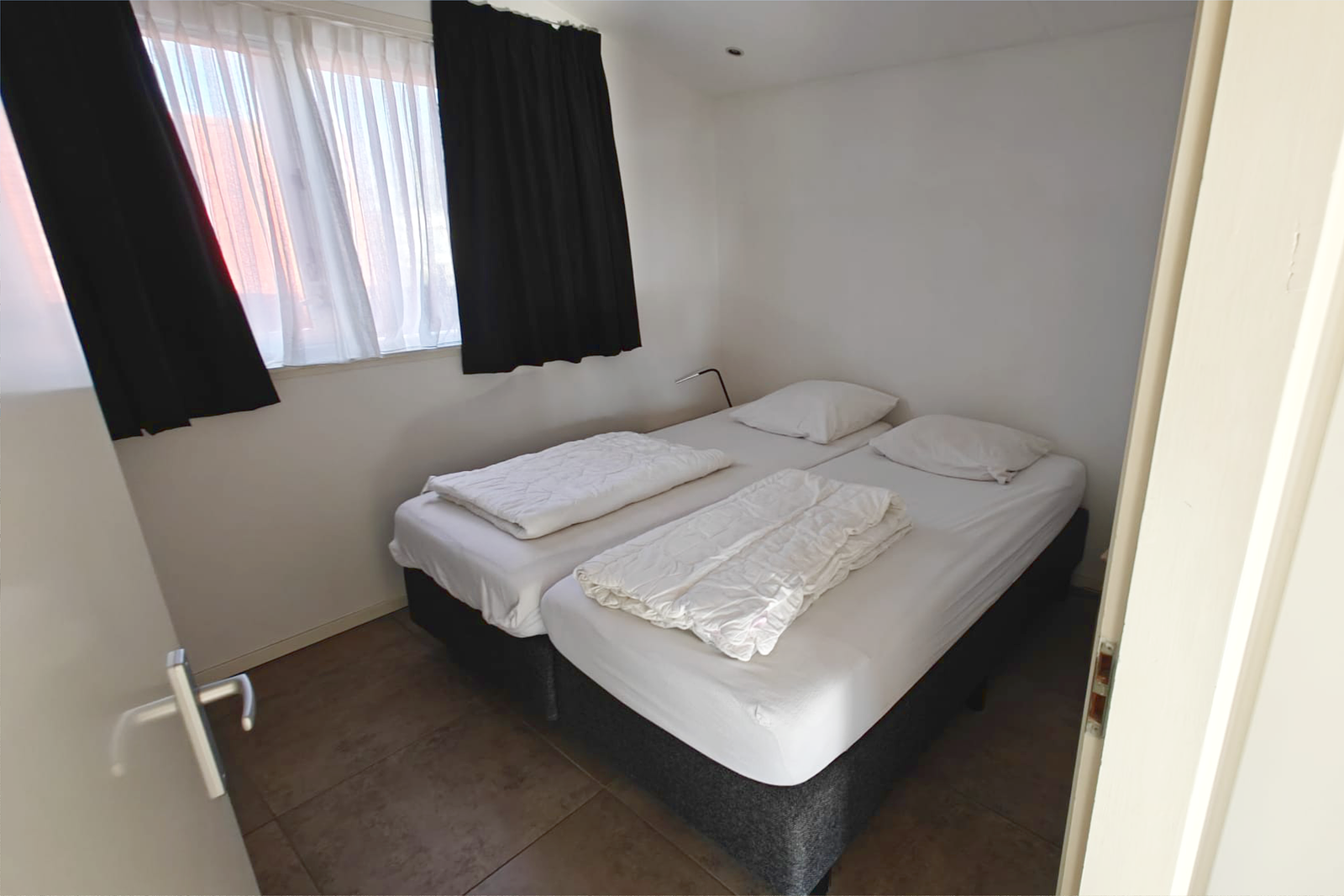 De bungalow beschikt over twee ruime slaapkamers, elk ingericht met twee comfortabele eenpersoonsbedden. De kamers zijn licht, rustig gelegen en bieden voldoende ruimte voor kleding en persoonlijke spullen. Ideaal voor gezinnen of twee stellen die samen een vakantiewoning in Groote Keeten willen huren.